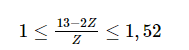 ⇔ Z ≤ 13 – 2Z ≤ 1,52Z