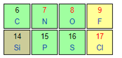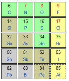 Liên hệ giữa các nguyên tố đó trong bảng tuần hoàn được mô tả trong bảng sau: