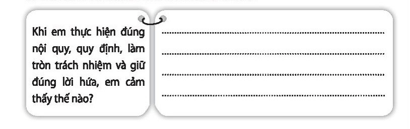 - Em cảm thấy rất thoải mái, cảm thấy tự hào, thấy bản thân thật có ích khi thực hiện đúng quy định, làm tròn trách nhiệm, giữ lời hứa.