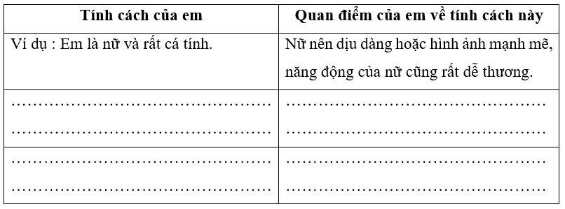 Bài tập 3 trang 16 SBT Hoạt động trải nghiệm 10: Viết ra ba tính cách đặc trưng của em. Tính cách đó mang tính tích cực hay không tích cực và có hoàn toàn trùng với quan điểm em đánh giá cao về tính cách đó hay không?