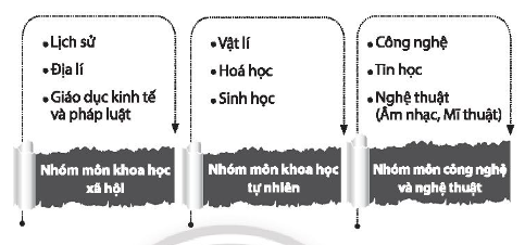 Môn học mà em lựa chọn trong từng nhóm môn học theo định hướng nghề nghiệp: địa lí, lịch sử, vật lí, tin học, công nghệ.