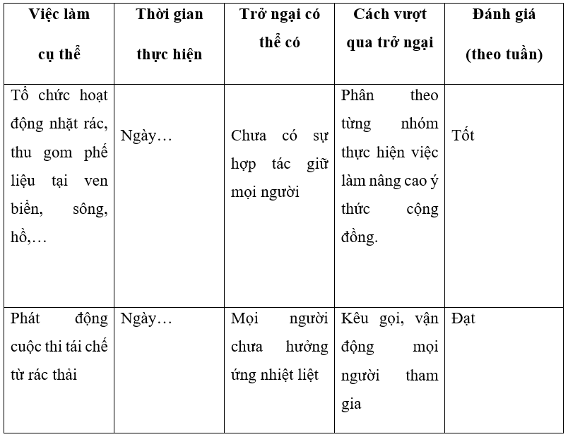 Bài: Lập kế hoạch tuyên truyền bảo vệ cảnh quan thiên nhiên và đề xuất những việc làm cụ thể để bảo vệ môi trường tự nhiên