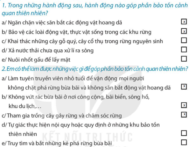 - Những việc em đã làm để góp phần bảo tồn cảnh quan thiên nhiên