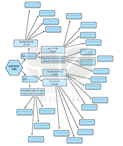 Học sinh tự điền vào sơ đồ tư duy để khám phá được nghề truyền thống ở địa phương em.
