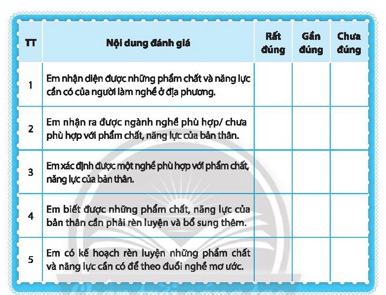 Em nhận diện được những phẩm chất và năng lực cần có của người làm nghề ở địa phương |