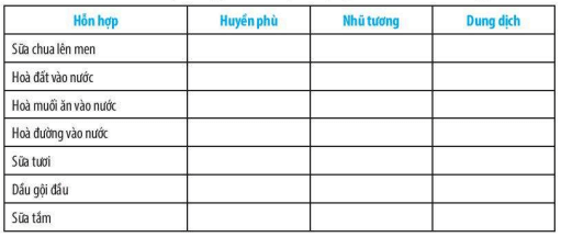 Bài 15.18 trang 51 sách bài tập KHTN 6: Đánh dấu x vào ô phù hợp để xác định trạng thái của các hỗn hợp sau: