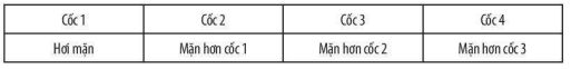 Bài 15.6 trang 49 sách bài tập KHTN 6: Bạn Vinh tiến hành thí nghiệm như sau: Bạn dùng dụng cụ chưng cất để đun 100 ml nước tới sôi, dẫn hơi nước qua hệ thống làm lạnh để nước ngưng tụ lại tạo thành nước cất. Bạn cho nước cất vào bốn cốc, mỗi cốc 20 ml. Tiếp theo, bạn cho vào cốc 1, 2, 3, 4 lần lượt 2, 4, 6, 8 gam muối ăn và khuấy đều. Bạn nhận thấy: