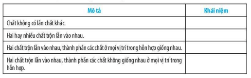 Hai chất trộn lẫn vào nhau, thành phần các chất ở mọi vị trí trong hỗn hợp giống nhau |