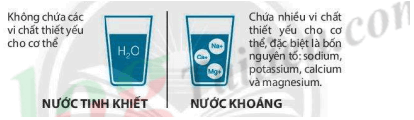 Bài 15.4 trang 48 sách bài tập KHTN 6: Trên một số bình nước khoáng có dòng chữ “Nước khoáng tinh khiết”. Theo em, ý nghĩa của dòng chữ này có hợp lí không? Tại sao?