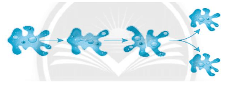 Hình trên mô tả quá trình sinh sản của trùng biến hình. Từ một tế bào mẹ ban đầu tạo ra hai tế bào con mới.