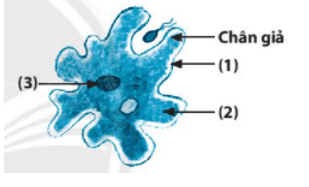 a) Hoàn thành cấu trúc tế bào trùng biến hình bằng cách gọi tên các số (1), (2), (3).