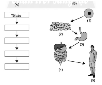 a) Viết tên các cấp độ tổ chức trong cơ thể đa bào vào cột (A)
