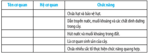 Bài 20.8 trang 71 sách bài tập KHTN 6: Căn cứ vào cột chức năng, hãy điền tên các cơ quan của thực vật ở bài tập 20.7 vào cột tên cơ quan và tên các hệ cơ quan tương ứng vào cột hệ cơ quan trong bảng dưới đây