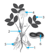 (1) rễ (2) thân (3) lá (4) hoa (5) củ (6) hạt.