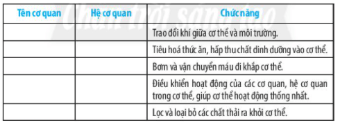 Bài 20.6 trang 70 sách bài tập KHTN 6: Căn cứ vào cột chức năng, hãy điền tên các cơ quan ở bài tập 20.5 vào cột tên cơ quan và tên các hệ cơ quan tương ứng vào cột hệ cơ quan trong bảng dưới đây.