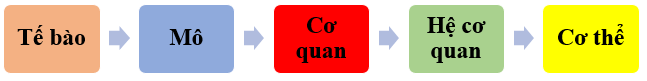 d) Sơ đồ thể hiện mối quan hệ của năm cấp tổ chức trong cơ thể đa bào từ nhỏ đến lớn: