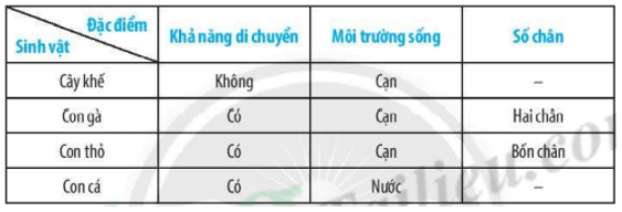 Bài 22.10 trang 79 sách bài tập KHTN 6: Cho một số sinh vật sau: cây khế, con gà, con thỏ, con cá. Em hãy xác định các đặc điểm đối lập và xây dựng khóa lưỡng phân phân loại các sinh vật trên.
