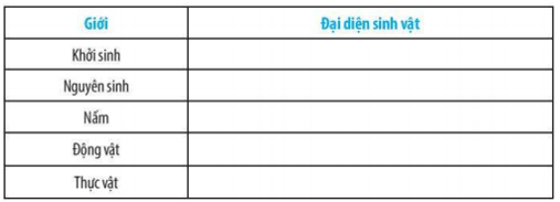 Bài 22.9 trang 79 sách bài tập KHTN 6: Cho một số sinh vật sau: vi khuẩn E.coli, trùng roi, nấm men, nấm mốc, rêu, lúa nước, mực ống, san hô. Hãy sắp xếp các sinh vật sau vào các giới sinh vật bằng cách hoàn thành bảng sau: