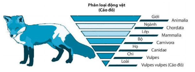 Bài 22.8 trang 78 sách bài tập KHTN 6: Quan sát sơ đồ các bậc phân loại loài Cáo đỏ trong hình sau và cho biết: