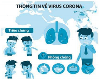 Bài 24.8 trang 84 sách bài tập KHTN 6: Quan sát hình bên và cho biết biểu hiện có thể xuất hiện ở người bị nhiễm virus corona và biện pháp phòng chống.