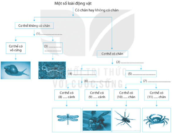 Bài 26.4 trang 45 sách bài tập KHTN 6: Em hãy hoàn thành những thông tin còn thiếu trong sơ đồ phân loại khóa lưỡng phân để phân loại một số loài động vật sau