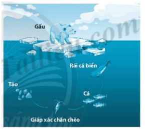 Bài 27.9 trang 91 sách bài tập KHTN 6: Điều gì sẽ xảy ra với các sinh vật trong chuỗi thức ăn ở hình bên nếu số lượng tảo trong chuỗi thức ăn bị giảm đột ngột?
