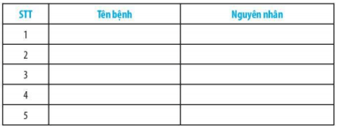 Bài 27.8 trang 91 sách bài tập KHTN 6: Em hãy nêu một số bệnh lây nhiễm thường gặp trong đời sống và cho biết tác nhân gây bệnh là gì bằng cách hoàn thành bảng sau: