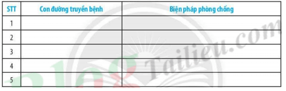 Bài 28.9 trang 94 sách bài tập KHTN 6: Hãy trình bày một số con đường lây bệnh do nấm gây nên và biện pháp phòng bệnh bằng cách hoàn thành bảng sau: