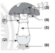 a) Tên các thành phần cấu tạo nấm độc (1), (2), (3), (4), (5), (6) là gì?