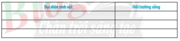 Cho biết các đại diện trên sống ở những môi trường nào bằng cách điền vào bảng theo mẫu sau: