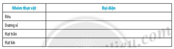 Sắp xếp các đại diện sinh vật trên vào các nhóm thực vật đã học theo mẫu sau: