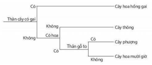 Bài 30.5 trang 99 sách bài tập KHTN 6: Hãy xây dựng khóa lưỡng phân cho các thực vật sau: cây hoa phượng, cây hoa mười giờ, cây hoa hồng gai, cây thông.