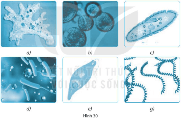 Bài 30.2 trang 50 sách bài tập KHTN 6: Những sinh vật nào trong hình 30 thuộc nhóm nguyên sinh vật?