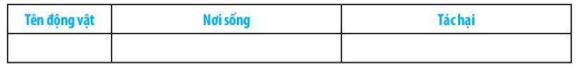 Bài 31.10 trang 102 sách bài tập KHTN 6: Hãy thực hiện một cuộc khảo sát nhỏ điều tra về một số động vật gây hại cho nền kinh tế địa phương. Từ đó cho biết cách phòng trừ những tác hại mà các động vật đó mang lại bằng cách hoàn thành bảng sau: