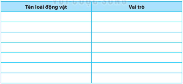 Bài 36.7 trang 60 sách bài tập KHTN 6: Kể tên một số loài động vật mà em biết, Nêu vai trò của chúng đối với con người và hoàn thành bảng sau: