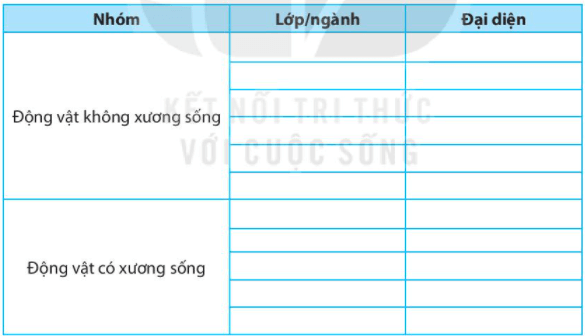 | Động vật không xương sống | Ruột khoang | Sứa, hải quỳ |