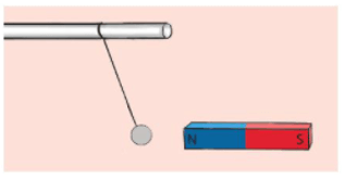 b) Nam châm hút viên bi sắt.