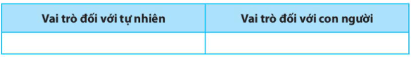 Bài 38.2 trang 63 sách bài tập KHTN 6: Trình bày vai trò của đa dạng sinh học đối với tự nhiên và với con người bằng cách hoàn thành thông tin vào bảng sau: