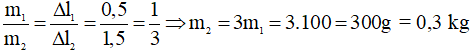 Treo thẳng đứng một lò xo, đầu dưới treo quả nặng 100g thì độ biến dạng của lò xo là 0,5 cm. Nếu thay quả nặng trên bằng một quả nặng khác thì độ biến dạng của lò xo là 1,5 cm.