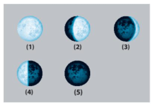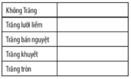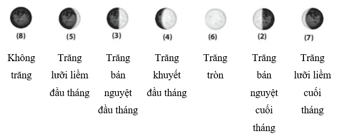 Bài 44.5 trang 127 sách bài tập KHTN 6: Điền số thể hiện hình dạng nhìn thấy của Mặt Trăng trong hình bên tương ứng tên hình dạng vào bảng.