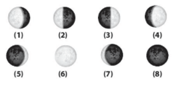 Bài 44.6 trang 128 sách bài tập KHTN 6: Sắp xếp các hình dạng nhìn thấy của Mặt Trăng ở hình bên dưới theo thứ tự trong tháng âm lịch, bắt đầu từ pha không trăng.