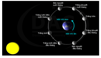 Khi đó ta thấy hình dạng Mặt Trăng là Trăng khuyết.