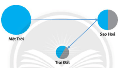 Bài 45.8 trang 130 sách bài tập KHTN 6: Trong sơ đồ bên dưới là Mặt Trời, Trái Đất và Sao Hỏa. Chúng ta nhìn thấy Sao Hỏa vì nó phản chiếu ánh sáng từ Mặt Trời.