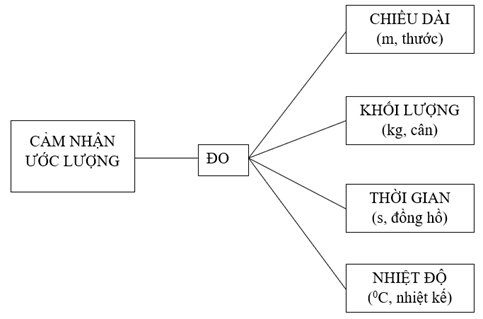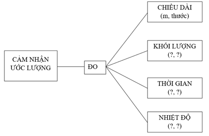 Bài 3.1 trang 8 sách bài tập KHTN 6: Tìm đơn vị đo và dụng cụ đo thích hợp với các vị trí có dấu (?) trong sơ đồ sau đây.