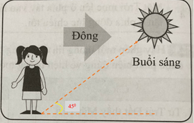 Trong hình vẽ ta thấy, Mặt Trời nhô khỏi mặt đất ở hướng đông được một góc khoảng 45o.