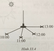 Bài 33.6 trang 82 sách bài tập KHTN 6: Vào một ngày tại một nơi Mặt Trời mọc lúc 6 giờ sáng và lặn lúc 6 giờ chiều. Em hãy cho biết thời điểm người quan sát thấy Mặt Trời ở vị trí như hình 33.2 là vào khoảng mấy giờ.