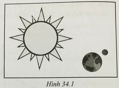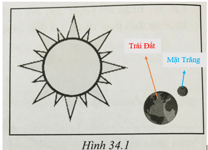 Bài 34.3 trang 84 sách bài tập KHTN 6: Hình 34.1 là hình vẽ minh họa Mặt Trời, Mặt Trăng và Trái Đất. Em hãy cho biết đâu là Mặt Trăng và Trái Đất.
