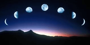 Trăng tròn -> Trăng khuyết -> Trăng bán nguyệt -> Trăng lưỡi liềm.