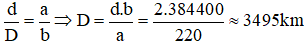 Vậy đường kính của Mặt Trăng khoảng 3 495 km.