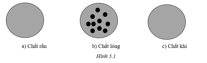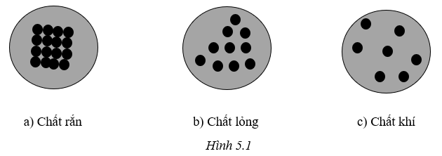 Bài 5.10 trang 14 sách bài tập KHTN 6: Sự sắp xếp các “hạt” trong chất lỏng được mô phỏng như hình 5,1b. Hãy vẽ lại sự sắp xếp các “hạt” trong chất rắn và chất khí vào hình 5.1a, c. Vì sao chất khí lại dễ nén hơn chất rắn và chất lỏng?